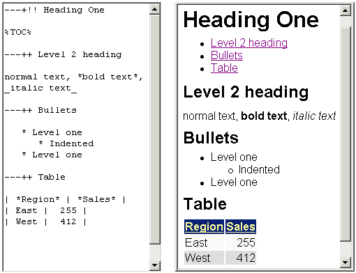 | *Region:* | *Sales:* | | East | 320 | | Central | 580 | | West | 240 | | Total: | %CALC{"$SUM($ABOVE())"}% |