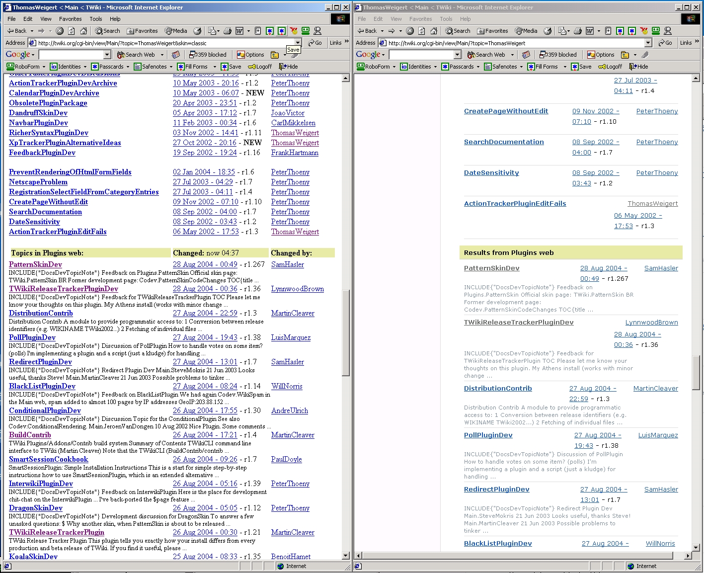 I hope that this example makes it clear why I am concerned. Note that generating tables from searches is the second most common thing you find in twiki topics, I believe.