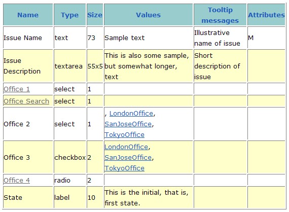 | Issue Description | textarea | 55x5 | This is also some sample, but somewhat longer, text | Short description of issue | |