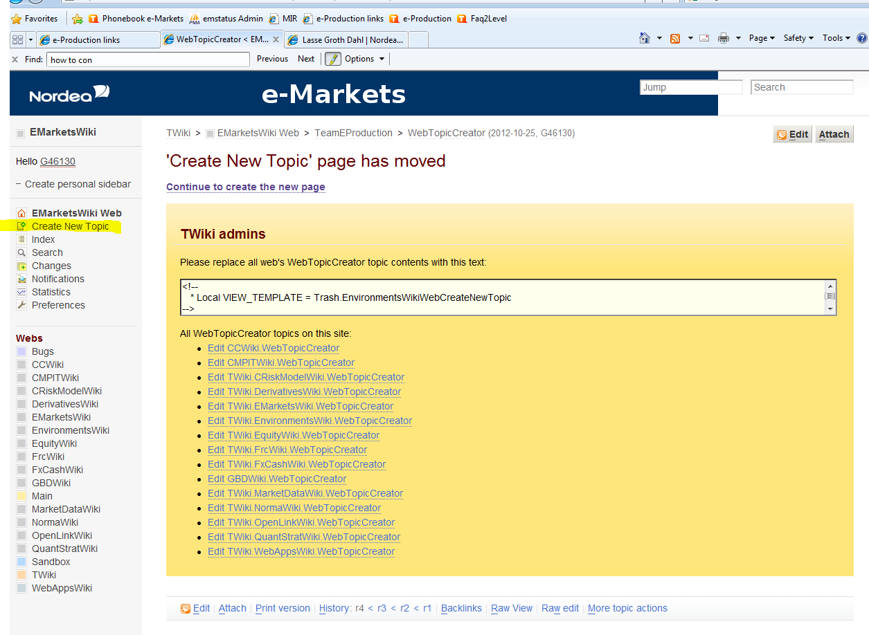 Please direct us the procedure on how to create new topics in Twiki 5.1.1