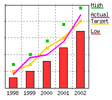 13 May 2004: V1.300 - Added support for type="scatter"; renamed type="arealine" to "combo" (arealine is undocumented); renamed datatype to subtype (datatype is undocumented); added subtype options "point" and "pline", added new settings GRIDCOLOR, DEFAULTDATA, POINTSIZE; fixed bug with how the number of grids were drawn