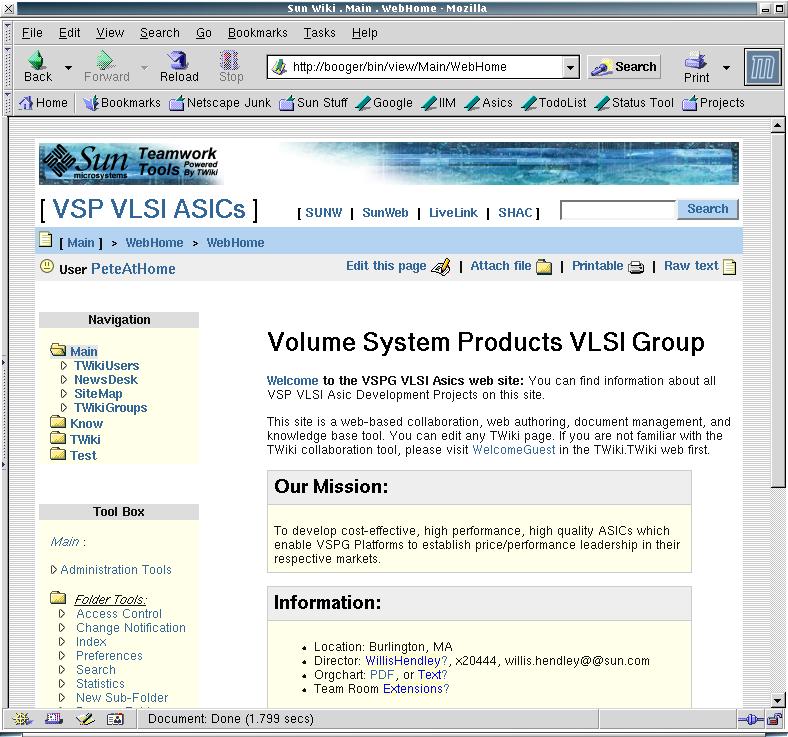 After receiving feedback about my local implementation of TWiki at Sun, and