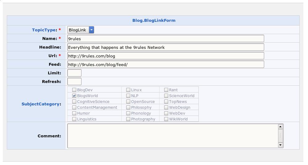 TWikiApplication add-on package that turns TWiki into a weblog