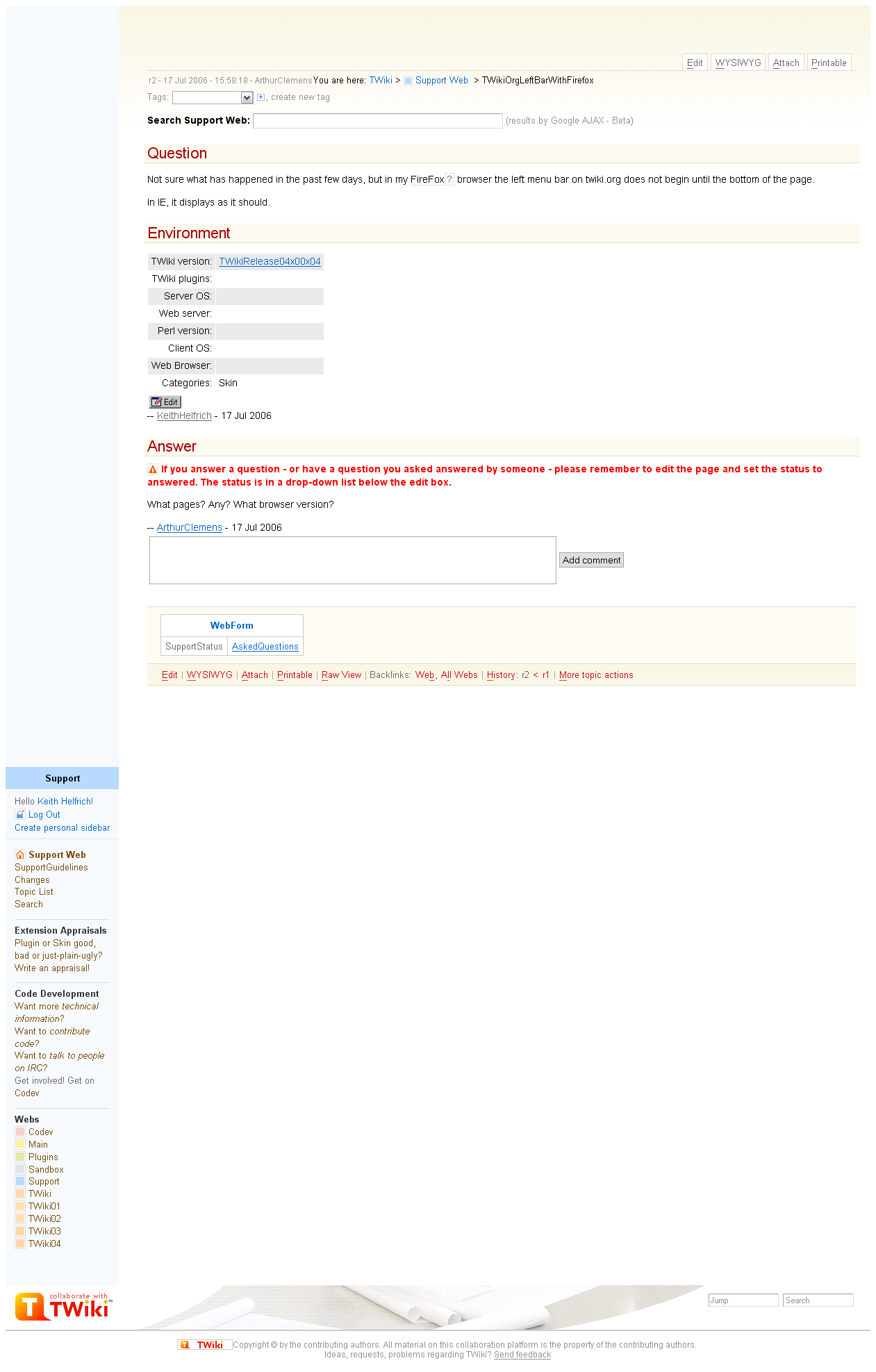 FireFox browser the left menu bar on twiki.org does not begin until the bottom of the page.