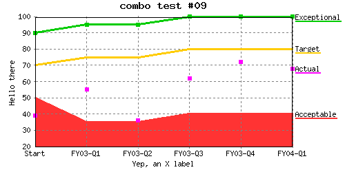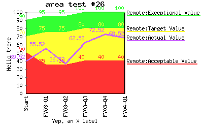 Specify different line colors to above where line "Acceptable" has a color of transparent so the background color will be seen as the line color. %CHART{name='lineTest15b' table='table1' type='line' data='R2:C4..R7:C7' xaxis='R2:C2..R7:C2' title='line test #15b' yaxis='on' ymin='0' ymax='100' ylabel='Hello there' xlabel='Yep, an X label' datalabel='box' legend='R1:C4..R1:C7' colors='transparent,#AAffAA,#AAAAff,#AAAAAA'}% |