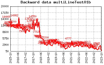 This is a bottom/up right/left chart and should be flipped left-to-right from the chart above. Because the data is read in reverse order, the line colors will be different. %CHART{name='multiLineTest04b' table='table1' type='line' data='R99:C7..R2:C4' xaxis='R99:C2..R2:C2' yaxis='on' xaxisangle='90' datalabel='on' title='Backward data multiLineTest04b' legend='R1:C7..R1:C4'}% |